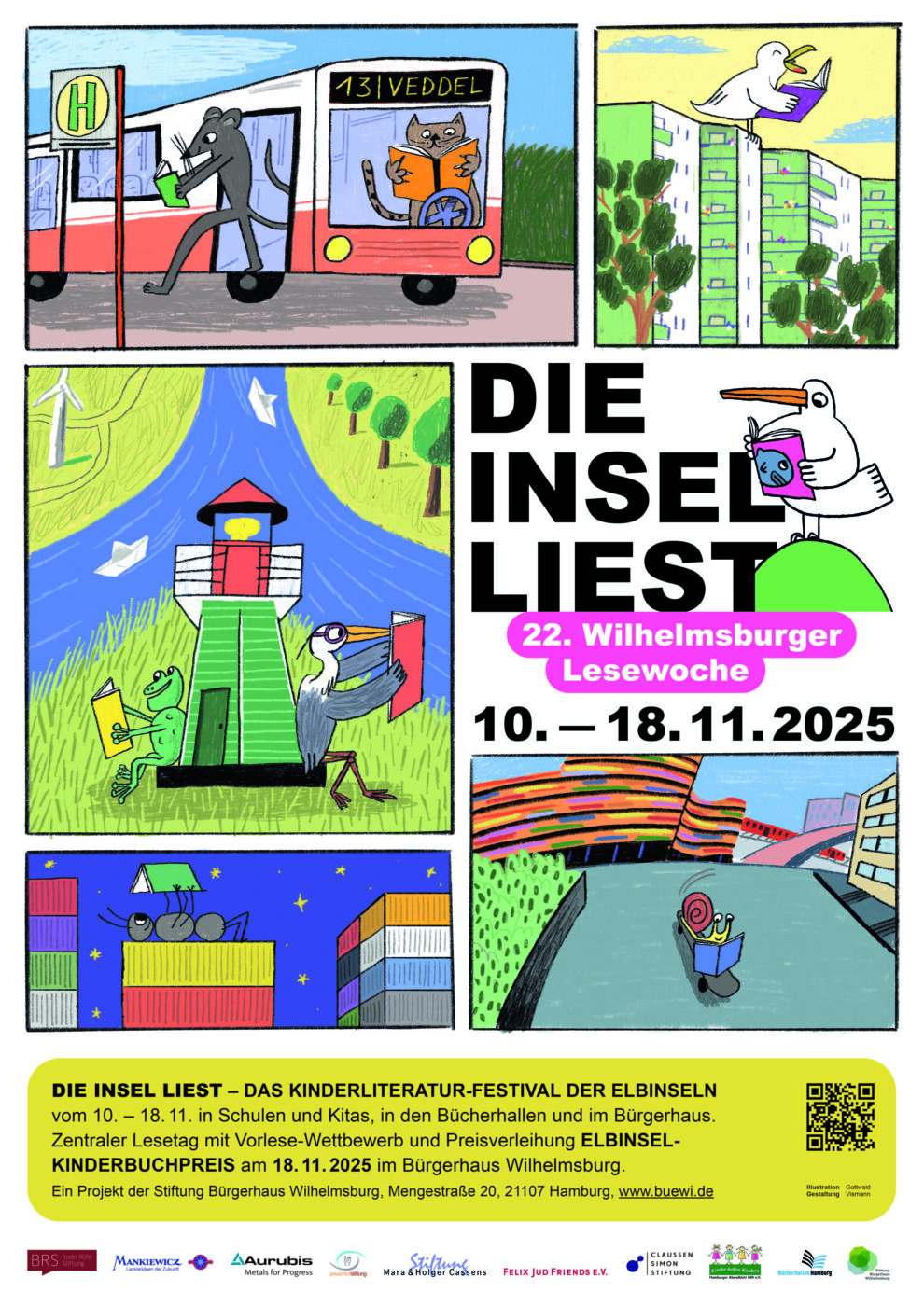 Vom 10.-14.11.2025 findet die diesjährige Wilhelmsburger Lesewoche statt. Am 18.11. ist der zentrale Lesetag im Bürgerhaus mit Vorlesewettbewerb der 4. Klassen und Preisverleihung des Elbinsel Kinderbuchpreises.